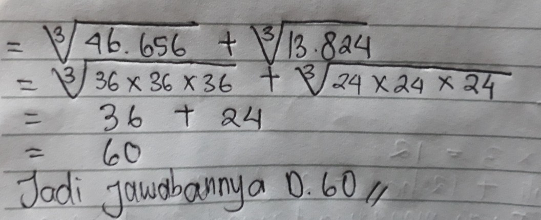 Nilai akar pangkat tiga suatu bilangan x adalah y dimana akar pangkat tiga tidak sempurna menghasilkan nilai tidak bulat atau desimal. Hasil bayangan satu ini melukiskan bagaimana hubungan antara unta dan suku badui. Tia lustiana 142151078 2014c program studi pendidikan matematika fakultas keguruan dan ilmu pendidikan universitas. Hasil dari dapur adalah percubaan pertama kami. Angka 8 ialah satuan dari 2^3. Satuan dari bilangan 1728 ialah 8. Berapakah hasil dari 3 x (4 + 2) + 3 =. Operasi hitung pangkat 3 dan akar pangkat 3. Jawaban yang benar untuk pertanyaan itu: Coba anda perhatikan bilangan pangkat 3 berikut ini 877 likes · 1 talking about this. Kami mempelbagaikan hasilan dan kami paparkan. Akar tiga dari 13824 adalah 24.