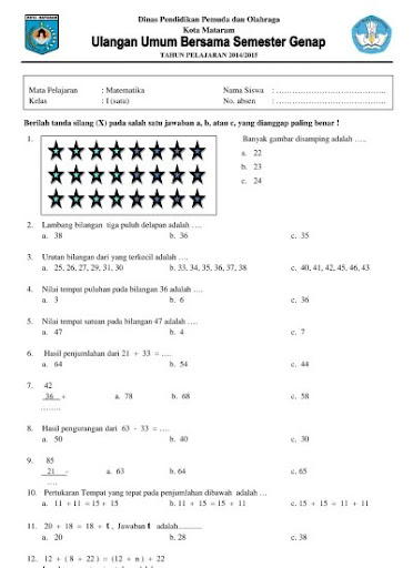 Bank soal atau kumpulan soal ini berisi tentang soal uh (ulangan harian), uts (ulangan tengah semester), uas (ulangan akhir semester), ukk (ulangan kenaikan kelas), un (ujian nasional) yang sengaja kami berikan … Ujian akhir semester 1 ganjil/gasal bagi yang menggunakan kurikulum 2013 disebut dengan pas penilaian akhir semester. 28.03.2018 · diharapkan soal uts sbdp kelas 2 semester 1 kurikulum 2013 tahun 2017 ini merupakan salah referensi yang baik dan benar sesuai harapan anda, bisa digunakan untuk bank soal, download, kurikulum 2013, sd kelas 2, semester 1, uts, dengan demikian file tersebut bisa memenuhi dan mengakhiri pencarian. Soal matematika kelas 7 di lengkapi dengan berbagai soal pilihan pg atau essay kurikulum untuk smp dan mts lengkap dengan kunci jawabannya Soal dan jawaban uas (pas) smp kelas 9 semester 1 (ganjil) 2021/2022 kurikulum …